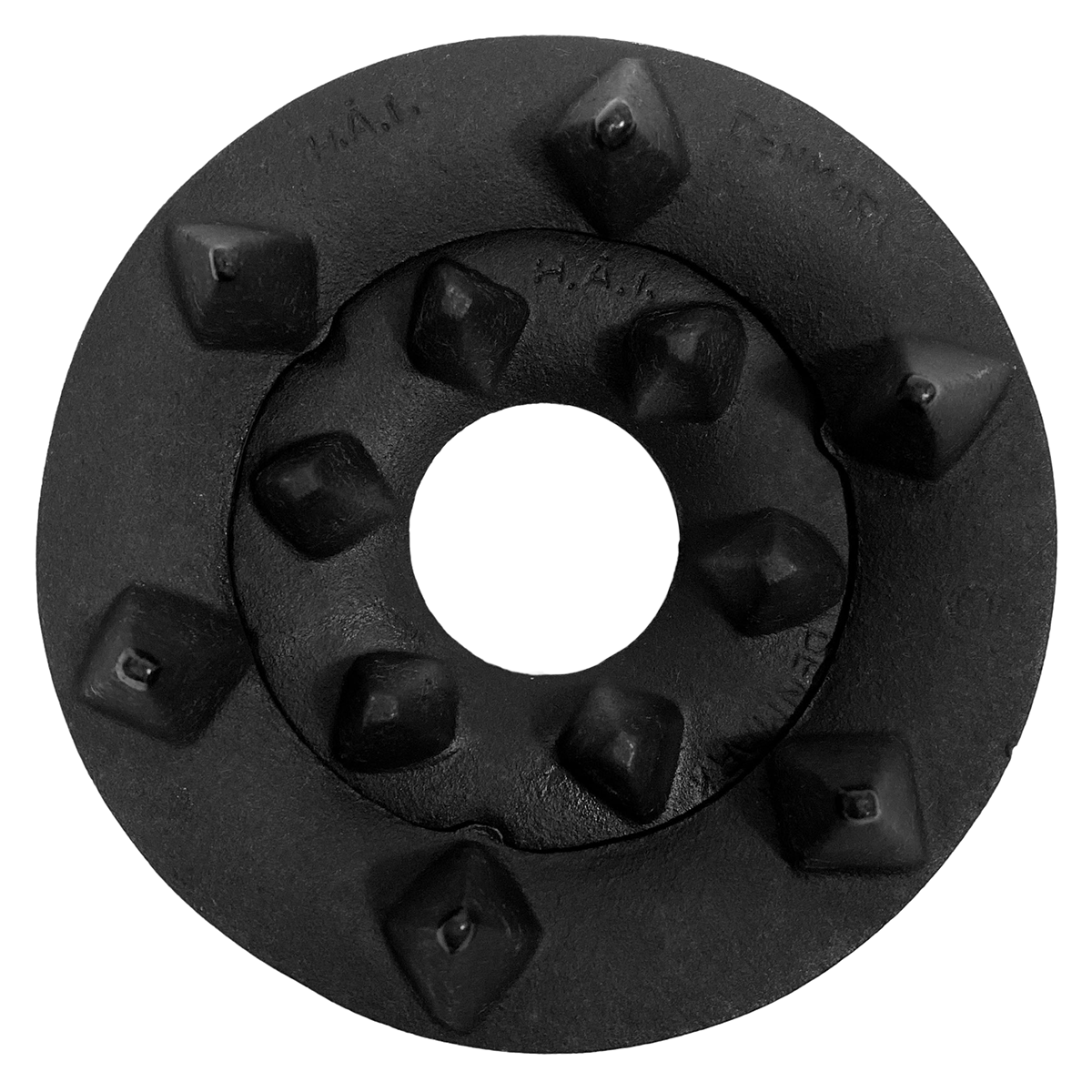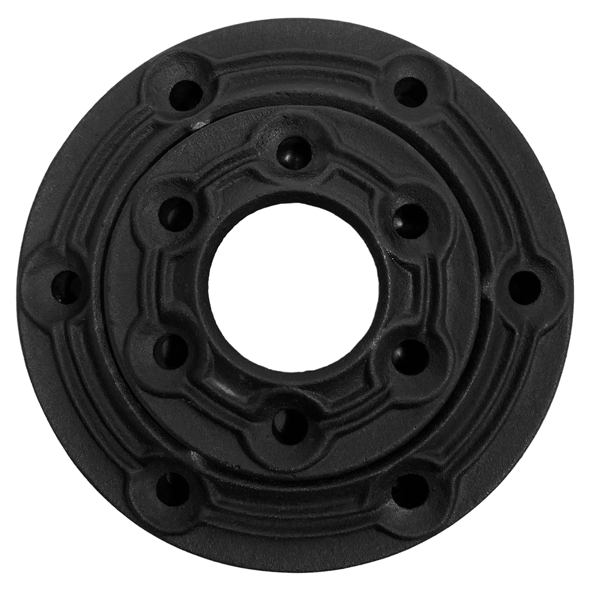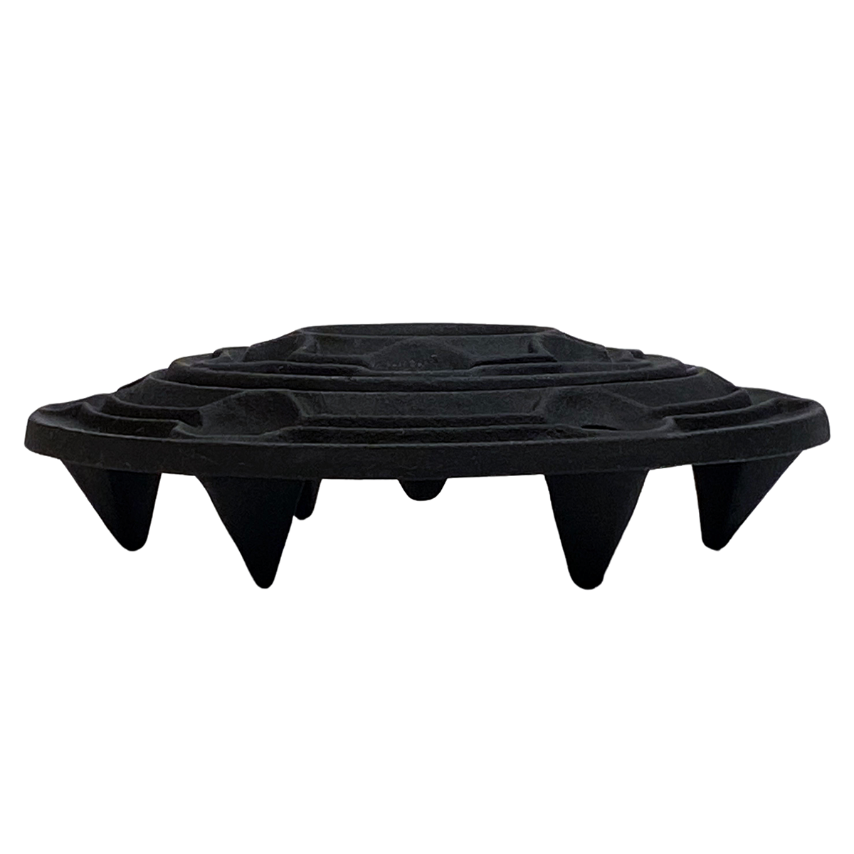 The sandy black cast iron DOUBLE candle holder fits 12 Tiny Taper candles in all – 6 in the outer ring and 6 in the inner ring. Hallmarked H.Å.I and Denmark. True classic Danish modern design, an obvious conversation piece, and an extremely attractive accent to any credenza, shelf, dinning or coffee table setting, providing a gorgeous flickering fan of light when lit.
